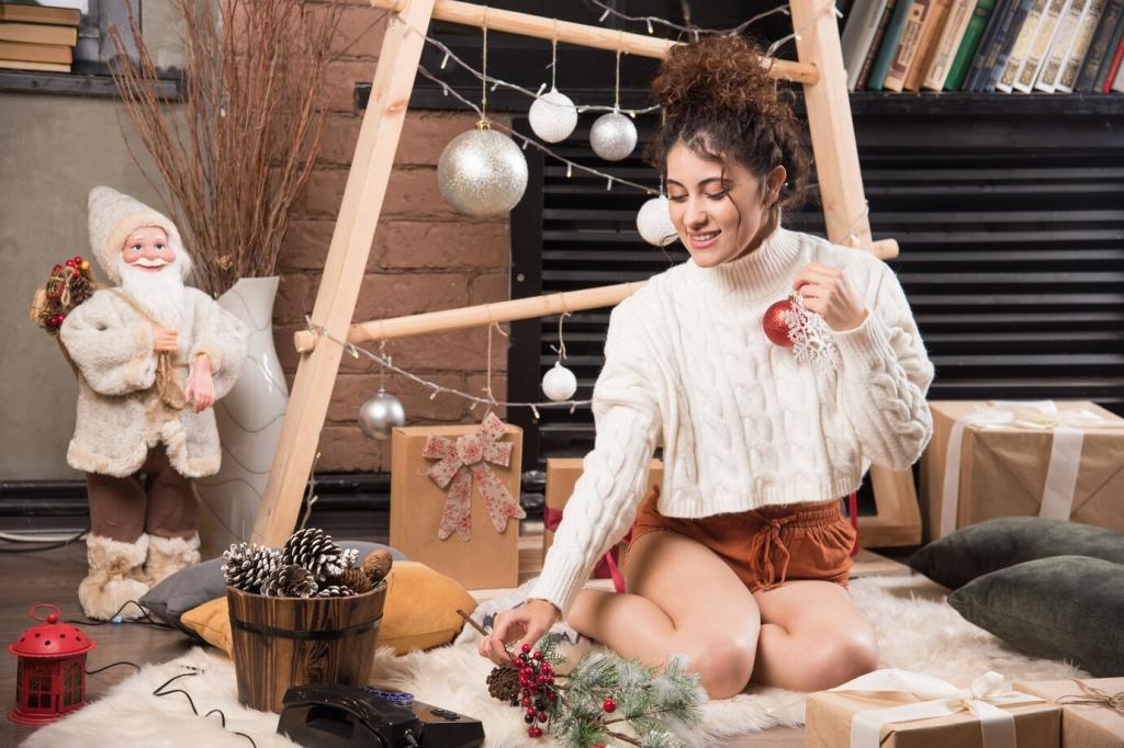 Wenn warmes Licht auf unregelmäßige Oberflächen trifft, wird es zerstreut, weicher und menschlicher. Holzmaserungen, Fasern und Rinde brechen Helligkeit wie ein leiser Filter. Probiere verschiedene Abstände zwischen Lichtquelle und Material, und erzähle uns, welche Kombination für dich am natürlichsten wirkt.